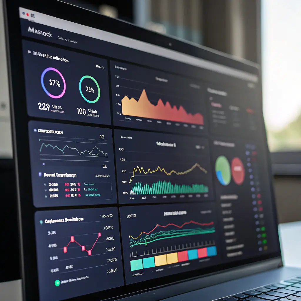 An image of a laptop displaying digital marketing analytics with various charts and graphs, showcasing AgenWora's expertise in data-driven digital marketing strategies.